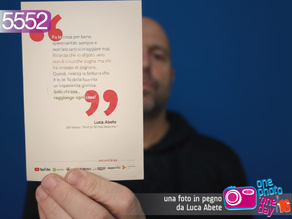 One Photo One Day nasce da un'idea di Luca Abete che, dal 1 dicembre del 2010 , decide di scattarsi una foto al giorno per raccontare un attimo di gioia, di stupore, per conservare un momento della sua vita professionale o personale. Oggi, nell’era del digitale, l’autoritratto o il cosiddetto “selfie” è alla portata di tutti i possessori di uno smartphone ma, quando Luca ha iniziato a scattarsi foto con una piccola macchina fotografica compatta, era un gesto molto innovativo e sicuramente inusuale. Precursore inconsapevole di una tendenza Luca, dopo una prima fase sperimentale, ci prende gusto e decide di proseguire. Non si considera un fotografo professionista, cerca solo di creare un ricordo da conservare.